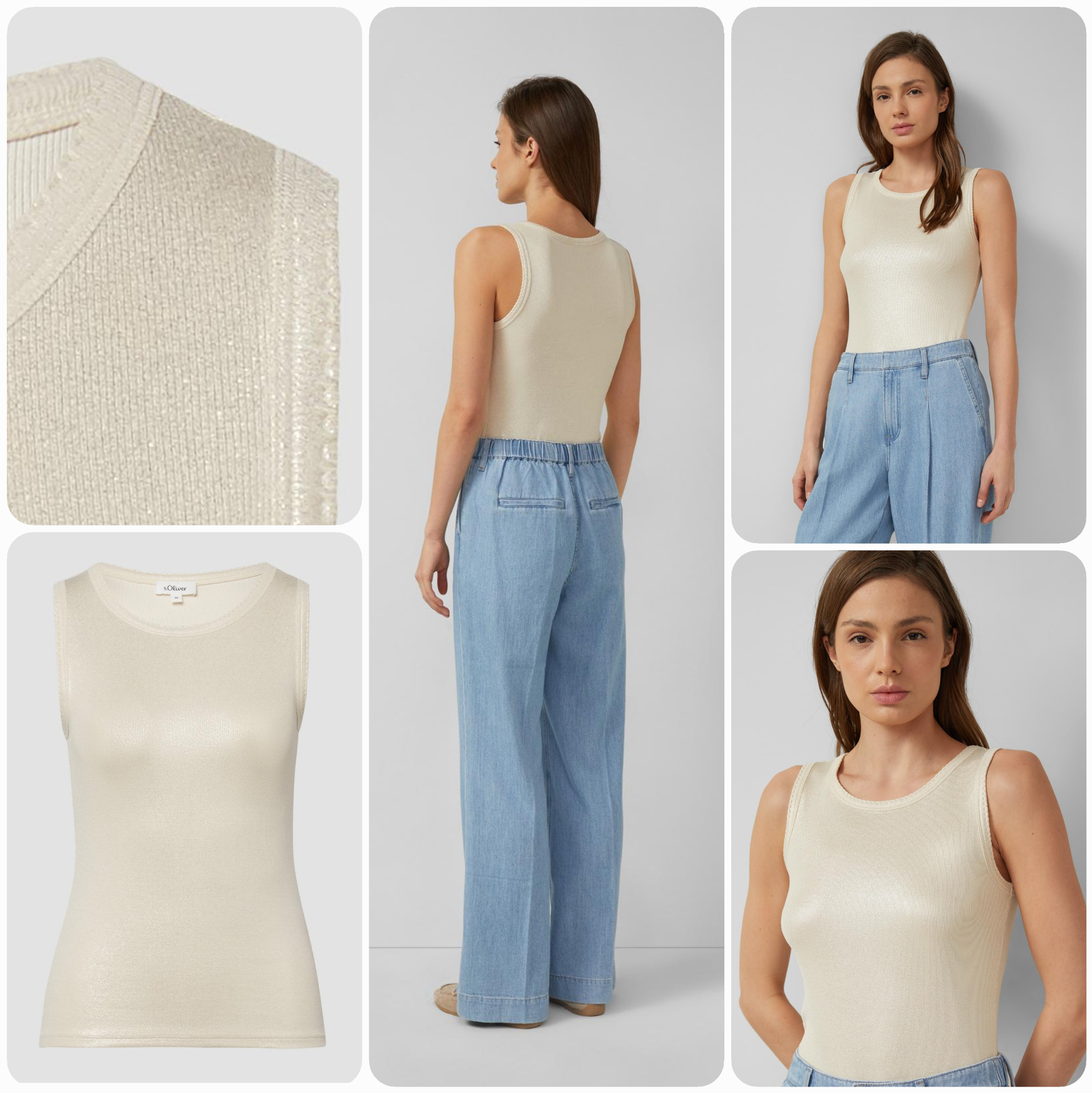 Tento žebrovaný top bez rukávů v metalickém vzhledu vytvoří lesklý akcent pro váš každodenní vzhled! Měkký žerzej s povrchovou vrstvou je příjemný a díky elastickému materiálu perfektně padne. Kulatý výstřih a přiléhavý střih z něj dělají všestranný kousek - ať už na uvolněné víkendové nošení, nebo na zvláštní příležitosti.